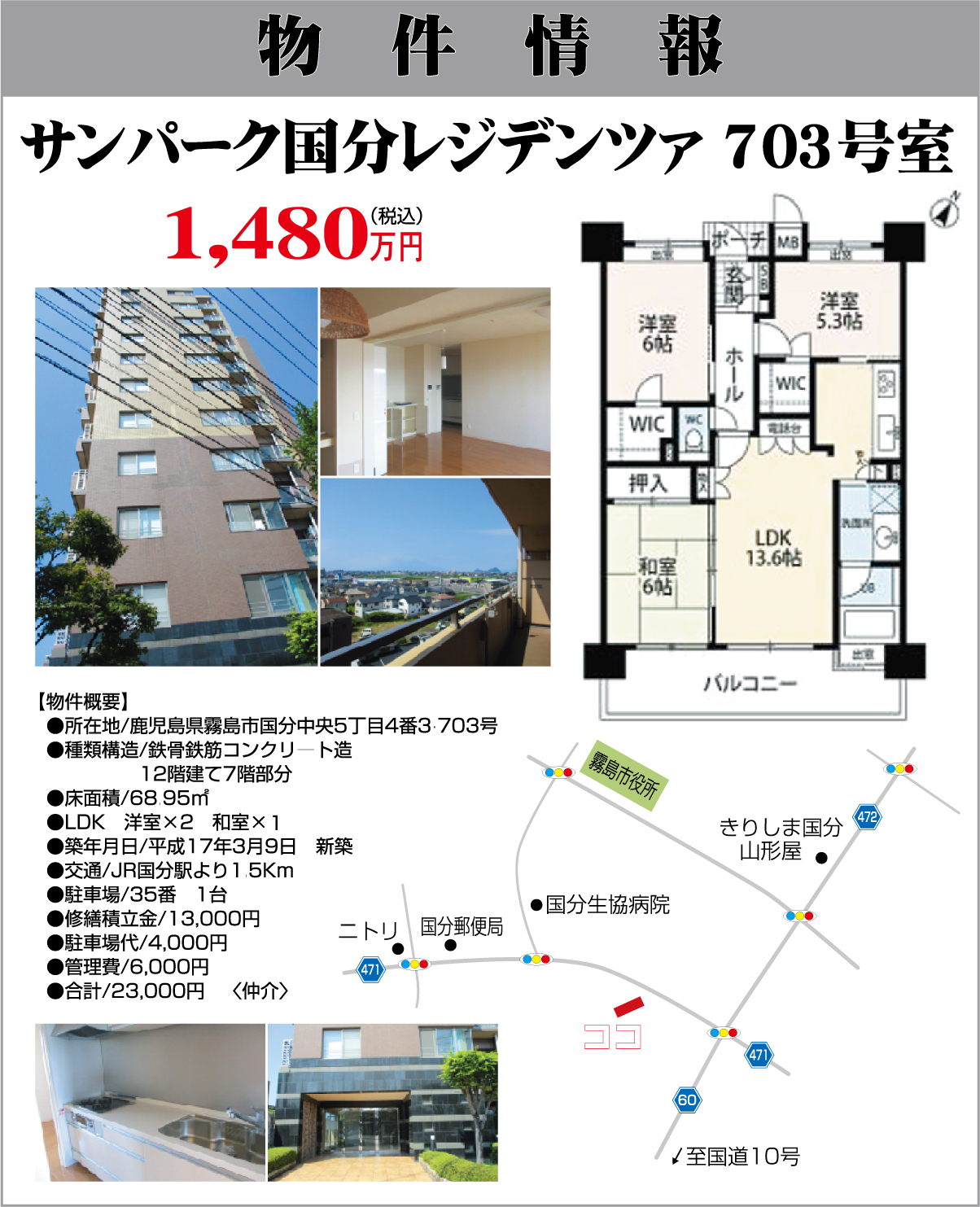 【物件情報】国分中央/サンパーク国分レジデンツァ703号室 2022.07.29 JR国分駅より1.5Kmの物件です。駐車場1台(4000円)。管理費6,000円。68.95平米のLDK、洋室x2、和室x1。1,480万円(税込) 動画でご紹介 写真でご紹介 Tweet Share Hatena RSS 【物件情報】国分名波町/恒吉ニュータウンD105号 前の記事